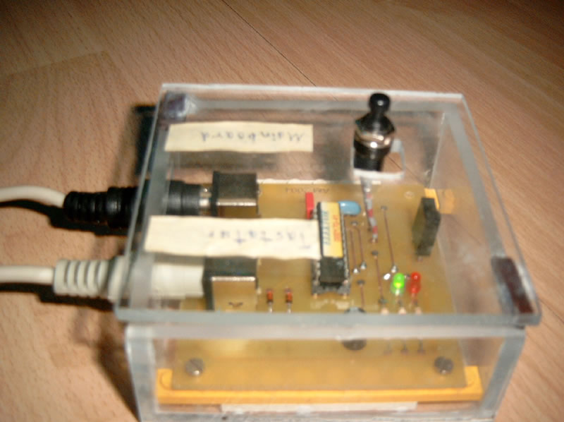 Da man mit meinem Betriebssystem die Tastatur nicht benutzen kann während sie an dem Empfänger Platine drangehängt ist, suchte ich eine Lösung. Ich kam auf die Idee einen Umschalter zu entwickeln, der von Platine auf den PS2 Anschluss umschalten kann. Doch leider hatte ich keine Zeit mehr diesen weiterentwickeln und zu bauen.